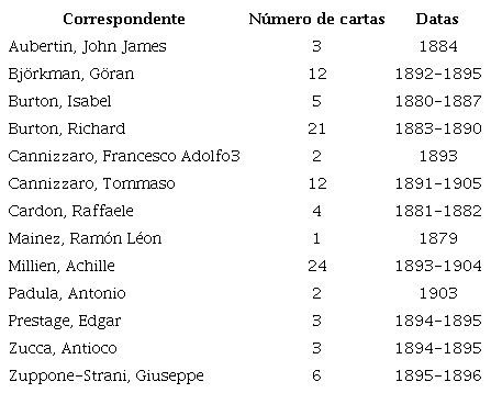 A maioria dos lusófilos europeus (excluindo os alemães e os portugueses) representados em Münster não manteve uma correspondência regular nem duradoura com Storck, como se depreende desta tabela: