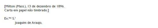 Por conseguinte nasci debaixo da bandeira Americana, porem nunca m’esqueço que nasci em terra Portugueza, e tenho por assim dizer, duas Patrias, e interesso me vivamente no futuro de Portugal especialmente, no seu progresso moral e verdadeiro.