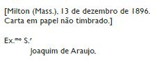 Carta de Roxana Lewis Dabney para Joaquim de Araújo