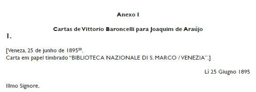 Cartas de Vittorio Baroncelli para Joaquim de Araújo