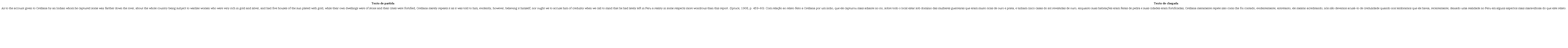 Beard (2010) dialoga com Frota (2000) ao citar os lapsos de escrita ou leitura, até mesmo lapso de ações, como resultado de uma intenção consciente contrariada. Os atos casuais aqui elencados refletem o esforço de as tradutoras manterem a coerência e relação com o TP, não descartando a necessidade urgente de marcar a importância de divulgar questões voltadas aos povos originários e, mais especificamente, às mulheres guerreiras indígenas da época do achamento do Brasil. Seguimos, assim, a visão das autoras aqui citadas e acrescentamos ao nosso escopo tradutório a menção de Berman (2013) sobre o objetivo tradutório mais profundo, que deve conter ética, poética e, de alguma forma, filosofia. Como relação à dita fidelidade e exatidão, Berman (2013, p. 95) diz referirem-se à postura do homem sobre si mesmo, assim como ao mundo e à nossa existência, todos esses pontos entrelaçados na construção textual, que deve ser um ato ético, que “consiste em reconhecer e receber o Outro enquanto Outro”. Dessa forma, buscamos aqui deixar o Outro se revelar e manifestar o seu estado e necessidades, (re)comunicando, na atualidade, o que foi comunicado em 1908, a partir de Spruce.