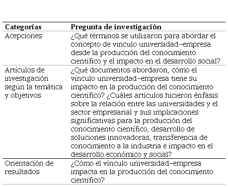 Se consideraron estudios publicados en los últimos 5 años. Se seleccionó aquellos estudios que evidenciaron el vínculo universidad-empresa y su impacto en la producción del conocimiento científico. Se organizaron y analizaron utilizando las técnicas adecuadas, se aplicaron análisis comparativos, integración de conclusiones de las fuentes consultadas y la validación cruzada de resultados aplicados en las bibliografías relacionadas con el objeto de estudio.