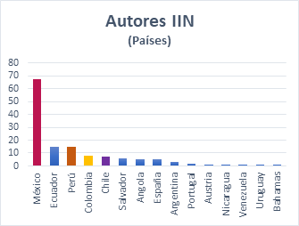 Asimismo, la distribución de autores por provincias pertenecientes a instituciones nacionales y los autores de instituciones internacionales por países, se muestran en la tabla 6 y en las figuras 3 y 4, que aparecen seguidamente.