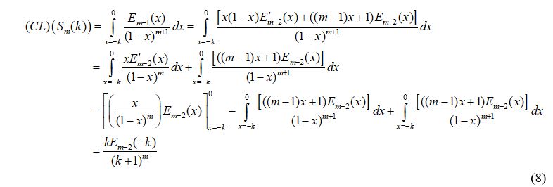 são polinômios eulerianos avaliados em x = -k e k é qualquer número real positivo.