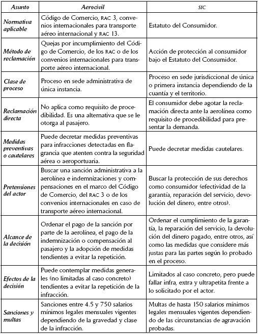 Como se mostró anteriormente, los procesos de reclamación ante la SIC y ante la Aerocivil presentan diferencias relevantes para los consumidores, que pueden afectar de una u otra forma sus pretensiones y su derecho a la reclamación.