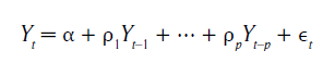 donde ϵt es un proceso de ruido blanco y ρ1, ⋯, ρp son los parámetros del modelo e indican el tipo de autocorrelación de los datos.