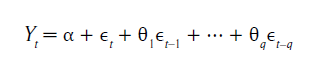 donde ϵt es un proceso de ruido blanco y θ1, ⋯, θq son los parámetros del modelo e indican el tipo de autocorrelación de los datos.