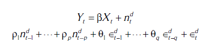 En este caso β corresponde a los parámetros del modelo que muestran la relación entre Xt y Yt y se interpretan igual que en los modelos de regresión lineal.