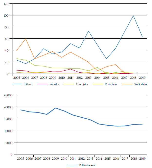 Retomamos aquí esta evidencia y argumentación, concentrándonos en el período posacuerdo y planteando las siguientes dos premisas que contribuyen a la necesaria reflexión (y diseño de orientaciones de política) sobre el fenómeno. Primero, no se puede entender la dinámica del asesinato de líderes sociales sin dar cuenta de los aspectos más relevantes del contexto; por ejemplo, la disminución de numerosos crímenes contra la población que precedió a los acuerdos de paz (y que fue fortalecida por ellos) (Gutiérrez & Parada, en prensa). Es decir, cualquier explicación convincente tiene que dar cuenta del aumento del asesinato de líderes y al mismo tiempo de la reducción de otras violencias. Segundo, hay que tener en cuenta los comportamientos diferenciales del Estado en cualquier explicación. El Estado puso en marcha políticas propaz —con muchos problemas, pero lo hizo—. Sin embargo, no necesariamente alineó el conjunto de sus fuerzas y orientaciones alrededor de tales políticas. En la medida en que ellas ‘tenían dientes’ y tenían la posibilidad de alterar las relaciones de poder en el territorio, el problema del alineamiento de diferentes agencias y actores dentro del Estado alrededor de su defensa se volvió un problema crucial.