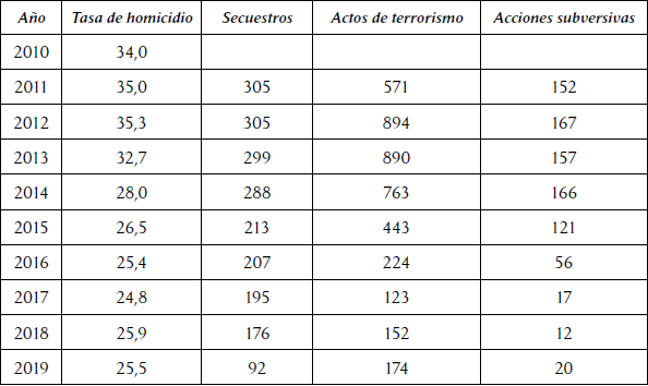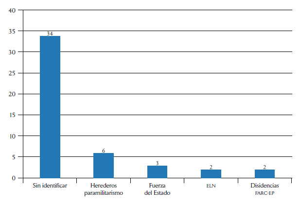 Tanto los dos gobiernos de Santos como el de Duque han rechazado la sistematicidad del fenómeno, atribuyéndolo a problemas personales —como dijera el entonces ministro de Defensa, Luis Carlos Villegas, se trataba de “líos de faldas” (El Espectador, 2017b)— o a actores ilegales, básicamente narcotráfico, eln o más recientemente disidencias de las farc (El Tiempo, 2019). De hecho, mientras escribíamos este artículo, la ministra del Interior, Alicia Arango, banalizó radicalmente el problema con su observación de que el robo de celulares cobraba más muertos que el asesinato de líderes (Blu Radio, 2020).