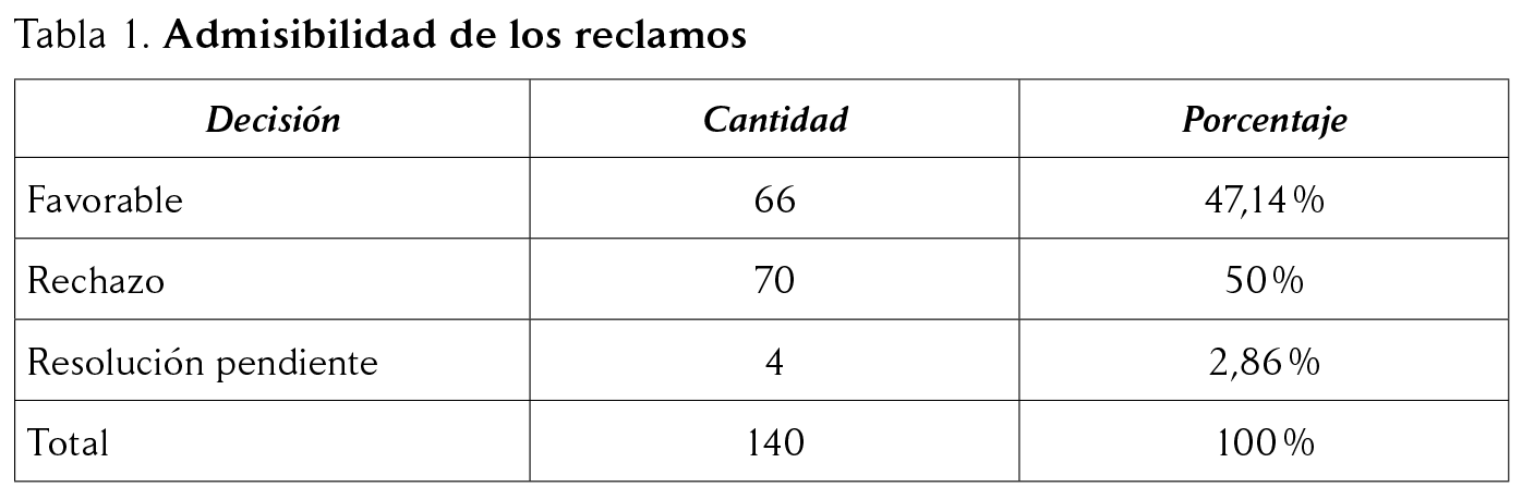 Antes de adentrarnos a un análisis de corte cualitativo sobre los aspectos más relevantes de la jurisprudencia, resulta prioritario establecer ciertos rasgos generales de las sentencias en estudio. Así, un primer aspecto fundamental es que el 100 % de los reclamos se producen una vez extinta la relación laboral (tabla 1). Es decir, las mujeres que sufren violencia en los ámbitos del trabajo son despedidas o se ponen en situación de despido indirecto (artículos 242 y 246 de la LCT)11 a causa del mismo. En relación con la admisibilidad de los reclamos, de la totalidad de la muestra solo un 50 % hace lugar al reclamo, mientras que un 47,14 % desestima la demanda. El 2,86 % restante corresponde a resoluciones de medidas cautelares que todavía no se han expedido sobre el fondo.