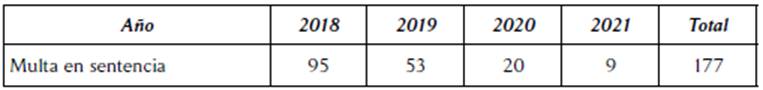 También se recaudó información de las multas impuestas mediante sentencia por la SIC con fundamento en el numeral 11 del artículo 58 del Estatuto del Consumidor para los últimos años, en la que se pudo ver que cada año hay menos sanciones (tabla 2).