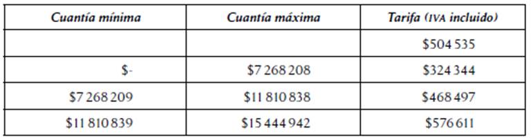 Por su parte, en la tabla 5 se encuentra el marco tarifario correspondiente al trámite conciliatorio para 2021.