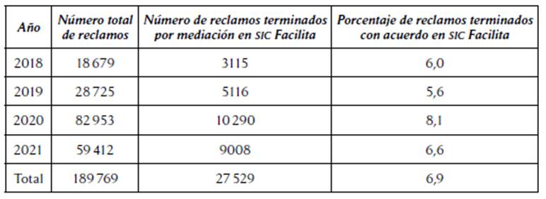 Es importante destacar que en los derechos de petición dirigidos a la SIC se solicitó información sobre el número de demandas de acción de protección al consumidor que se interpusieron ante esta luego de no llegar a un acuerdo directo por medio de la plataforma SIC Facilita para cada una de las anualidades 2018, 2019, 2020 y 2021. A esto la SIC respondió que no es posible comprobar qué demandas fueron interpuestas como consecuencia de un incumplimiento en el arreglo directo adelantado ante SIC Facilita, dado que a la demanda que se radica por parte de los usuarios se le asigna un nuevo número de radicado ante la Delegatura para Asuntos Jurisdiccionales (SIC, 2022).