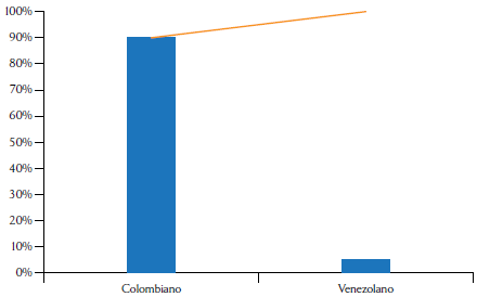 En cuanto a la nacionalidad, 138 encuestados resultaron ser colombianos y 10 venezolanos. Lo que significa que el 93,244 % son nacionales y el 6,756 °/o son extranjeros.