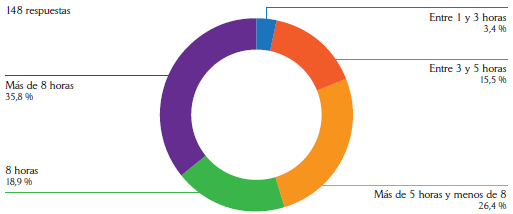 Frente al cumplimiento de una jornada laboral, es importante resaltar que más de la mitad de los domiciliarios cumplen una jornada laboral completa. Lo anterior, porque al sumar los repartidores que laboran más de 8 horas y los que laboran 8 horas, da como resultado un contundente 54,7 %.