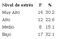 Los resultados encontrados respecto del nivel de estrés, obtenido a partir de la información ofrecida por el cuestionario de evaluación del estrés, presente en los ciclistas se detallan en la Tabla 1.