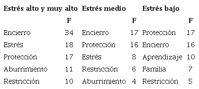 En los tres niveles de estrés se asocian las palabras: encierro, protección, restricción.