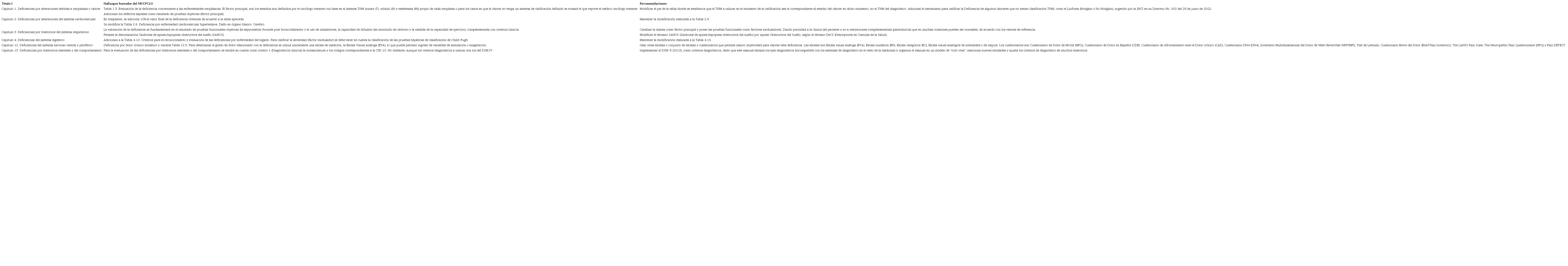En los capítulos del V al XI y del XIV al XV, no se evidenciaron modificaciones significativas del MUCPCLO 2014 al borrador dado están acordes con las necesidades médicas del país, por tanto, no hubo análisis profundo de estos.