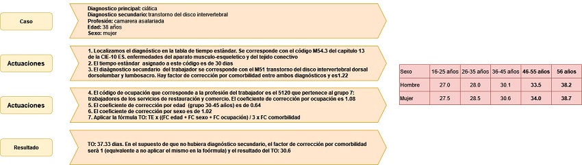 Cabe mencionar que la fórmula que se utiliza en Colombia para determinar el tiempo óptimo de recuperación en casos de incapacidad temporal considera múltiples factores, como la patología, la edad, el sexo, la ocupación y las comorbilidades. De acuerdo con la Figura 1, esta fórmula se encuentra referenciada en el Manual De Tiempos De Incapacidad Temporal Del Instituto Nacional De Seguridad Social. 14 Esto a partir de la investigación realizada que no evidencia normatividad jurídica que lo defina, sino material teórico aplicado en contexto colombiano con fuente española.