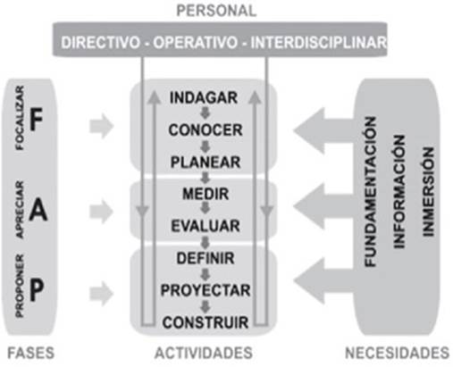 Para esta investigación se usó la metodología F.A.P (Focalizar, Apreciar, Proponer) 13 aplicándola a toda fuente de información para ser estandarizada: Esta metodología está orientada desde de la ergonomía participativa, para facilitar el planteamiento e implementación de propuestas de diseño que favorezcan la accesibilidad de PCD a puestos de trabajo esto significa poner un orden en todos los análisis y así se permitió una mejor compresión de la investigación, esto gracias a la tabla desarrollada por la metodología F.A.P (Figura 1) 14 con esto también se pretendió facilitar el planteamiento e implementación de las propuestas, consistente en la elaboración de un modelo de inclusión laboral para PCD que favorezcan su accesibilidad a los puestos de trabajo.