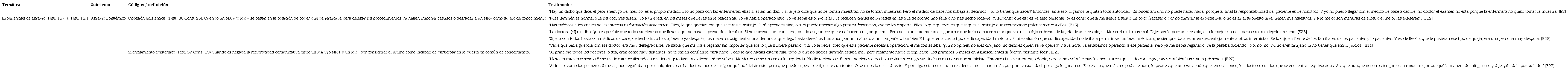 Los testimonios de los residentes confirman la exposición a situaciones de injusticia epistémica y manifestaciones de agravio como sujetos de conocimiento.