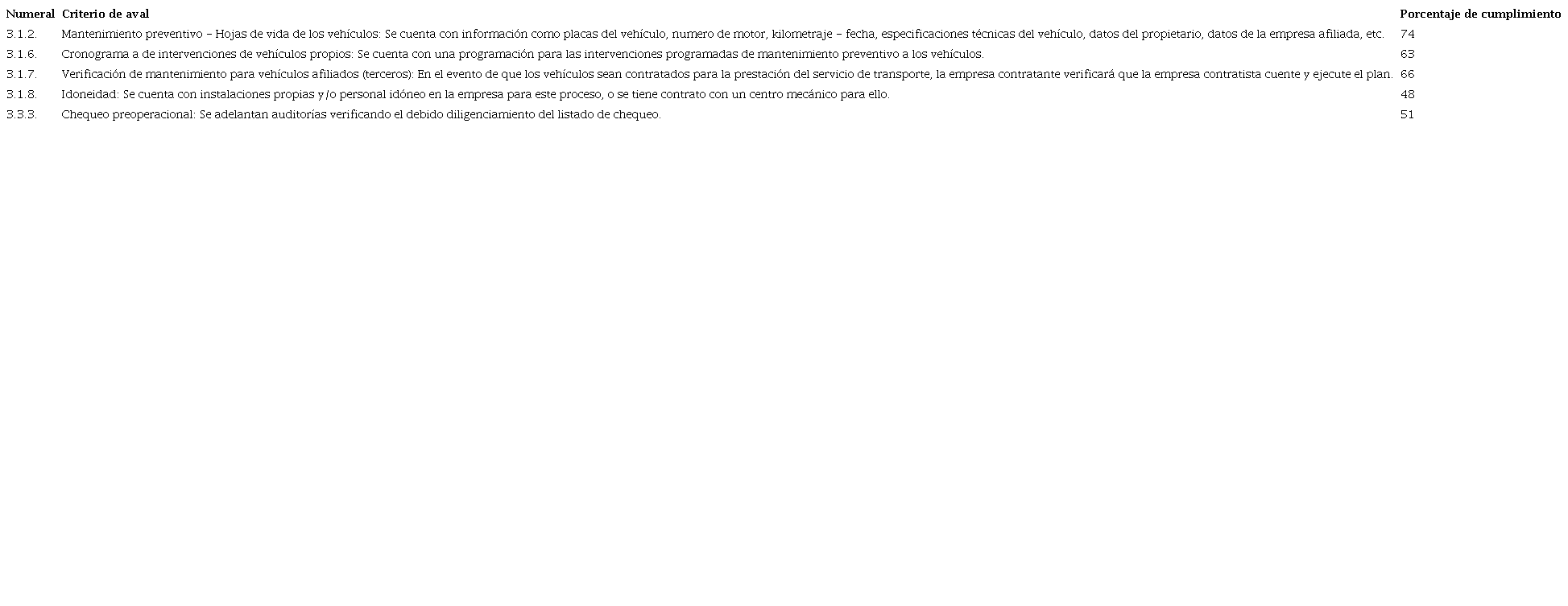 Es importante tener claro el alcance del PESV, de acuerdo a la definición presentada en el marco normativo, y entender la responsabilidad de cada empresa según las condiciones generales de los servicios de transporte, si los vehículos son propios, la responsabilidad de cada empresa está en garantizar adecuadas rutinas de mantenimiento de la flota, pero cuando se cuenta con vehículos alquilados o tercerizados, el alcance de cada empresa está en realizar adecuado seguimiento y control a las condiciones de cada vehículo a su servicio, y de los soportes que permitan evidenciar que existen los programas de mantenimiento preventivo y correctivo, y programa de inspecciones diseñados e implementados por parte de las empresas contratistas, 34% de las empresas que radicaron PESV no presentan evidencias de cumplimiento a este requerimiento.
