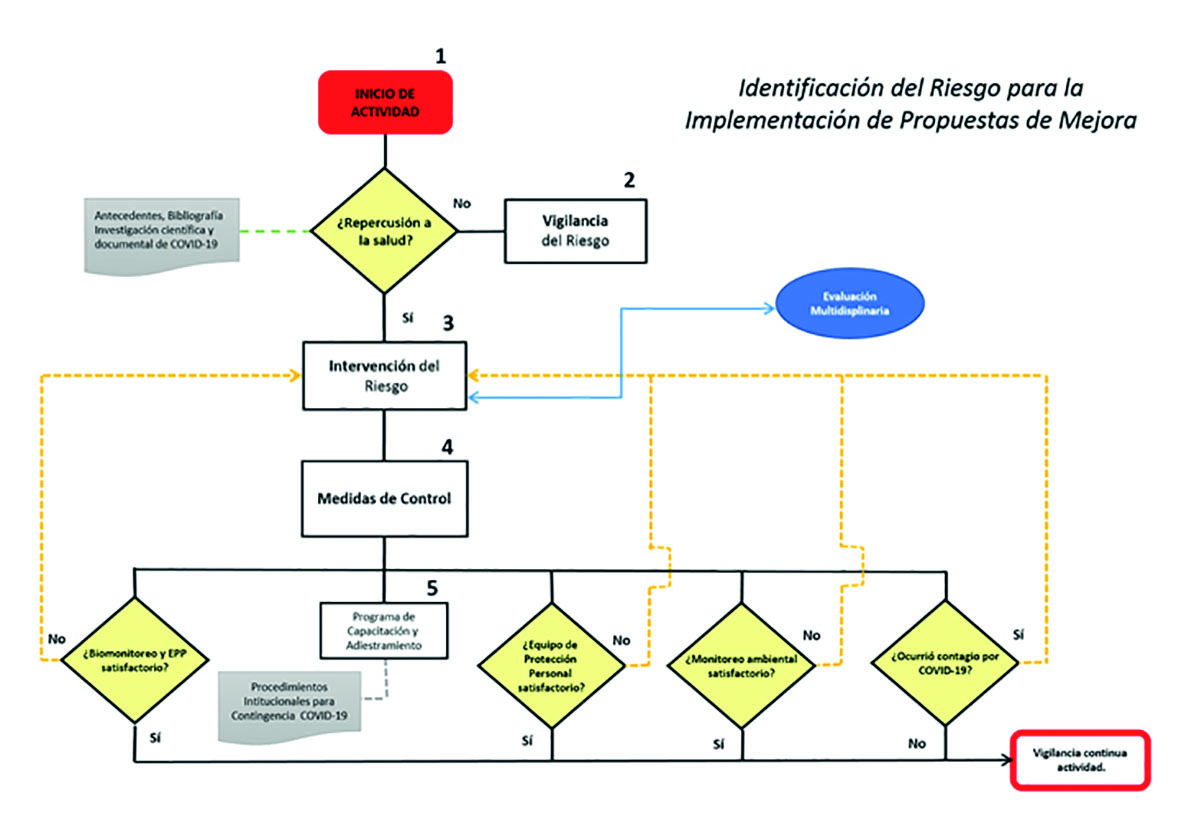 Existe un área de oportunidad en la difusión de las medidas de seguridad e higiene al contagio de COVID-19 en personal sanitario o la tropicalización de estos realizados a nivel global. Se considera de suma importancia dirigir las medidas hacia la bioseguridad. Hoy en día no hay datos sobre las concentraciones de la carga viral en permisibles en los químicos y la dosis letal media para producir alteraciones en la salud; por consiguiente, es difícil considerar el equipo de protección personal idóneo para la protección efectiva contra los microorganismos. Es un área que actualmente no se había tomado en cuenta hasta la llegada de esta pandemia; abre muchas fronteras para este campo de investigación, de esta forma, la llegada de las innovaciones en medidas de contención y control en un futuro para esta y cualquier enfermedad de origen viral que tengan un comportamiento similar, no ayudaran a restablecer con el paso del tiempo, el orden y el control de la salud en el personal que atiende el paciente enfermo y mejorar las condiciones en todos los ámbitos físico, emocional y social del trabajador sanitario. Un ejemplo claro, son algunos estudios pioneros que están por aterrizarse que por métodos luminiscentes y de biología molecular intentan escasamente lograr detectar el virus en el ambiente.