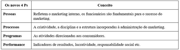 Desta forma, conforme exposto acima, Kotler e Keller (2012) afirmam que esse novo modelo de Ps reflete o conceito de marketing moderno e se aplica a todos os setores dentro de uma organização.