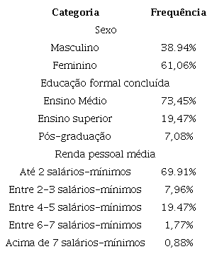 O perfil dos participantes da pesquisa é predominantemente feminino, com ensino médio concluído, ganhando até 2 salários-mínimos. Este perfil corresponde a cerca de 60% dos participantes, e estas características demográficas podem ter influência sobre os resultados alcançados.