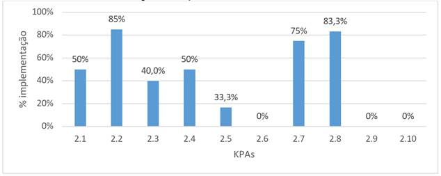 outros cinco KPAs (KPAs 2.3, 2.5, 2.6, 2.9 e 2.10) estão abaixo de 50% de implementação.