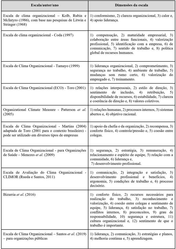 AHRENS, R. D.; TIMOSSI, L. D.; FRANCISCO, A. C. Análise comparativa entre modelos de pesquisa em clima organizacional. Revista Espacios, v. 35, n. 9, p. 14-28, 2014.