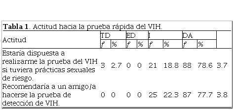 Actitudes, beneficios y barreras hacia la realización de la prueba rápida de VIH en mujeres amas de casa