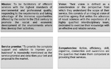 Based on the information analyzed on the corporate philosophy, the following characteristics of mission, vision and competencies will be presented (Table 3):