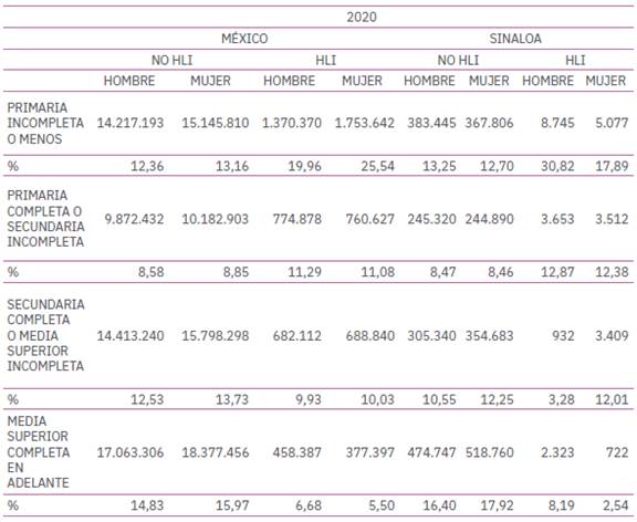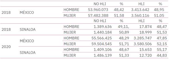 Habla lengua indígena (HLI) y No habla lengua indígena (NO HLI).