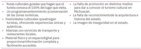 Keywords: Michoacán, cultural tourism, Blue Ocean Strategy, competitive advan tages, tourism promotion, tourism conservation, growth opportunities.
