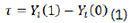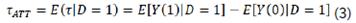 Donde yt (1) es la variable resultado, si el individuo i es tratado, y yt (0) es la va riable resultado, si el individuo i no es tratado. Como se mencionó anteriormente, el efecto individual del tratamiento r no se puede obtener, solamente el efecto medio. Este efecto se estima mediante algunos parámetros, los dos más comunes en la literatura son el efecto medio del tratamiento en la población (ATE) y el efecto medio del tratamiento sobre los tratados (ATT). El primero viene dado por: