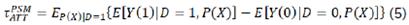 Donde Ep(x)|D=1 es el valor esperado con respecto a la probabilidad de parti cipación P(X). De esta forma, el PSM es simplemente la diferencia media en las variables resultado entre el grupo de tratados y el de control dentro del soporte común (Bernal y Peña, 2011).