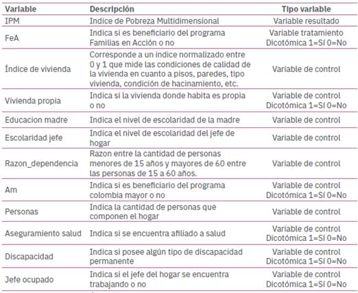 En la siguiente tabla se describen las variables que se utilizan para la estimación en cada uno de los programas.