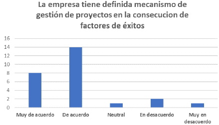 El Gráfico 2 exhibe un consenso entre los encuestados respecto a la relevan cia de establecer mecanismos de gestión de proyectos para alcanzar factores de éxito. A pesar de que los operadores logísticos desempeñan un papel crucial en la cadena de valor al manejar aspectos como el almacenamiento, picking, distribu ción de productos y gestión de inventarios, es imperativo asegurar la estandariza ción de costos logísticos, la reducción del volumen de inventario, la identificación de una mayor capacidad de adaptación en entornos cambiantes y la provisión de un servicio logístico de alta calidad. Estos aspectos son esenciales en los meca nismos de gestión de proyectos para alcanzar los factores de éxito deseados, los cuales resultan fundamentales para el progreso de todos los implicados (Porter, 2005; Calatayud & Katz, 2019).