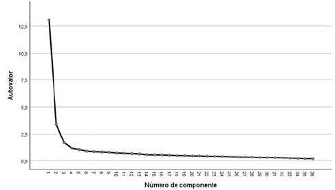 En conclusión, los cinco factores identificados, cada uno con un autovalor superior a 1, representan más del 56,7% de la varianza total, proporcionando una visión significativa de la estructura factorial inherente en el conjunto de datos (Hair et al., 2010). Además, la Figura 1 ofrece una perspectiva detallada de esta estructura factorial, facilitando la decisión sobre cuántos factores deberían retenerse para una representación fiel de los datos.