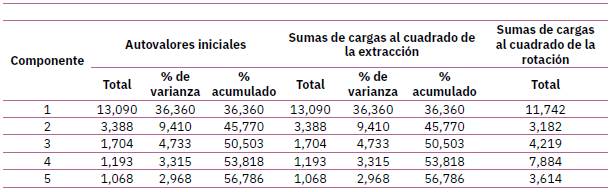 Además, Hair et al. (2010) ponen énfasis en la relevancia de las sumas de cargas al cuadrado después de la extracción y rotación, ya que estos valores posibilitan una interpretación más transparente y coherente de los factores al redistribuir la varianza entre los factores extraídos. En particular, la rotación es esencial para clarificar la interpretación de los factores, asegurando así una representación más exacta de la relación entre los factores y las variables observadas.
