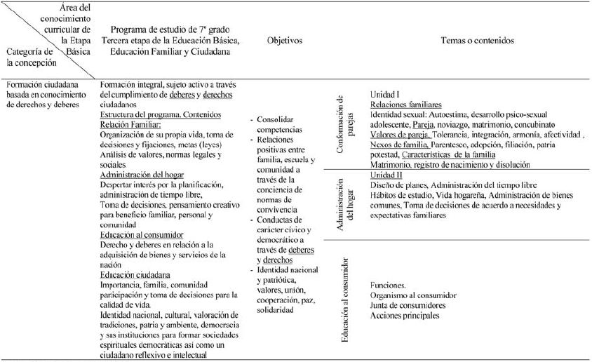En el Programa de la asignatura historia de Venezuela y educación familiar y ciudadana se ve reflejado una serie de contenidos de enseñanza para la historia de Venezuela descontextualizados de la historia local e inclusive según Atencio (2011) es una historia basada en hechos desde un enfoque del conocimiento histórico de los espacios del centro del país, desarticulando la historia regional y local, en referencia a la educación familiar y ciudadana en la próxima sección se develaran las tendencias que tiene en relación a los temas de enseñanza.