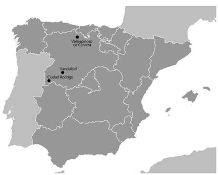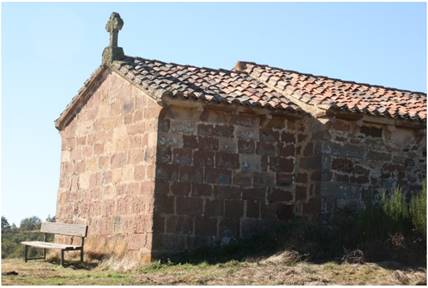 Frente a los grandes edificios eclesiásticos y monasteriales en los que se documentan complejas colecciones de grafitos y escrituras expuestas, las pequeñas iglesias parroquiales de la comunidad de Castilla y León, especialmente las que se encuentran en el tercio septentrional de la misma, rinden interesantes ejemplos de estas marcas sagradas plasmadas en el exterior de sus muros, ofreciendo interesantes lenguajes codificados que, salvo algunas excepciones2, han pasado casi sistemáticamente desapercibidos a los ojos de los investigadores, más interesados en documentar otros tipos de manifestaciones artísticas. Tal vez el hecho de que estos símbolos se hayan ido acomodando al paso del tiempo sin mayores problemas a otros tipos de grafiti, más modernos, pero de menor carga simbólica y por tanto menor interés etnográfico, ha permitido su conservación pero, por el contrario, han perdido protagonismo de cara a una investigación que, por desgracia, aún se encuentra por hacer. Aunque la nómina de ejemplos es enorme, no nos hemos podido resistir al análisis de un pequeño edificio sagrado de carácter rural por el interés que presentan sus cuarteados muros, soporte de un interesantísimo programa iconográfico que no ha sido estudiado hasta la fecha. La ermita de la Virgen del Valle, situada en el término municipal de Vallespinoso de Cervera, perteneciente a un pequeño pueblecito de la montaña palentina, es un pequeño edificio románico levantado en el siglo XIII, de planta rectangular con la cabecera plana (Huerta, 2002: 615-618) que cuenta en su interior con un interesante programa decorativo de pinturas murales (Manzarabeitia, 2001: 237-249; VV.AA., 1997: 98-104), restaurado en fecha reciente. Se trata de un edificio levantado en la cima de un pequeño cabezo ¿artificial? que domina el fondo de un vallejo, muy próximo a una fuente -que en la zona se denomina dojo- con propiedades mágicas que da lugar, en virtud de ciertas leyendas, a un característico paisaje sagrado nord-palentino (Cruz y Sánchez, 2021), donde la tradición apunta a cómo se apareció la imagen de la Virgen a un toro, cerca de dicha fuente, en cuyo espacio se levantó su ermita por imperativo de dicha imagen, siguiendo una puesta en escena muy común a lo largo de las edades media y moderna (Christian, 1990 y 1991).