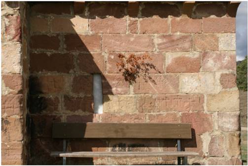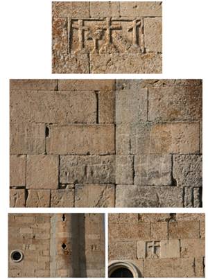 No es, sin embargo, la presencia de este recorrido penitencial el que nos interesa, por más que se trata de un tipo de documento bien conocido en la arquitectura (Castellanos, 1893), formando una suerte de trampantojo a lo divino de los viacrucis de bulto redondo (Robin, 2013), sino las representaciones cruciformes que se disponen en el lienzo situado a los pies del templo. Cuando la luz incide sobre el lienzo occidental, en las horas centrales de la tarde, se despliegan ante los ojos un impresionante conjunto de trazos cruciformes, incisos sobre la blanda arenisca con un instrumento de punta metálica, que viene a ocupar todo el tercio inferior de dicho lienzo a mediana altura y bajo las estaciones descritas (en concreto, entre la X y la XII). Documentamos a lo largo de cinco filas, dispuestas cada una sobre otras tantas hiladas de sillares, un total de 260 cruces de buen tamaño (cuya altura viene a coincidir con el ancho del sillar), grabadas con instrumento metálico que no deja profundas acanaladuras, de ahí que algunos símbolos, si la luz no incide de manera rasante, prácticamente pasan desapercibidos. Esta sucesión de cruces -todas ellas de perfil simple, sin pie- se han grabado de manera ordenada, como si de un particular sistema contable se tratase en el que, sin embargo, se percibe cierta diacronía definida por un desgaste diferencial en algunas de las cruces. Con todo, creemos encontrarnos ante una manifestación espontánea que no ha debido de realizarse a cabo de forma diacrónica, como lo pone de manifiesto similar hechura para todos los símbolos dispuestos de manera ordenada a lo largo de esta ancha banda que encontramos en el lienzo occidental. Se atestigua el hecho, por otro lado, de que coinciden en un mismo soporte un doble sistema de comunicación no escrita sobre la pared: el viacrucis, como representación de una práctica religioso oficial, frente a la plasmación de un ¿acto ritual? repetido a lo largo de un arco temporal muy concreto, más propio de la religiosidad popular que de la liturgia de la iglesia, seguramente realizados por unas pocas manos que trataron de mostrar un orden escrupuloso en la disposición de los símbolos sobre el soporte parietal.