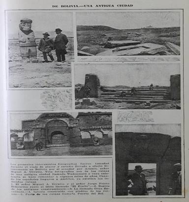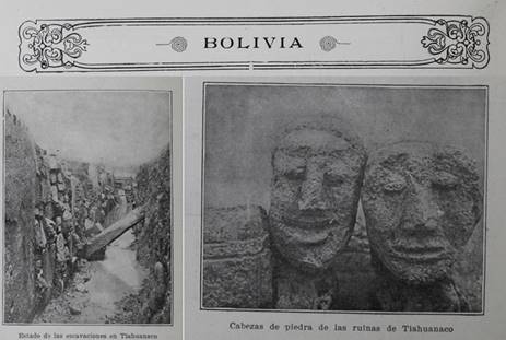 El artículo enfatiza y pone en contrapunto la idea de lo moderno y lo tradicional en sana coexistencia: “Muy cerca de esas ruinas, como formando contraste con la vetustez de ellas se alza una de las ciudades más adelantadas de Bolivia y que desde algún tiempo constituye la capital administrativa de ese país”. El texto se acompaña de las imágenes de partes del sitio arqueológico “Estado de las excavaciones en Tihuanaco” y “Cabezas de piedra de las ruinas de Tihuanaco”.