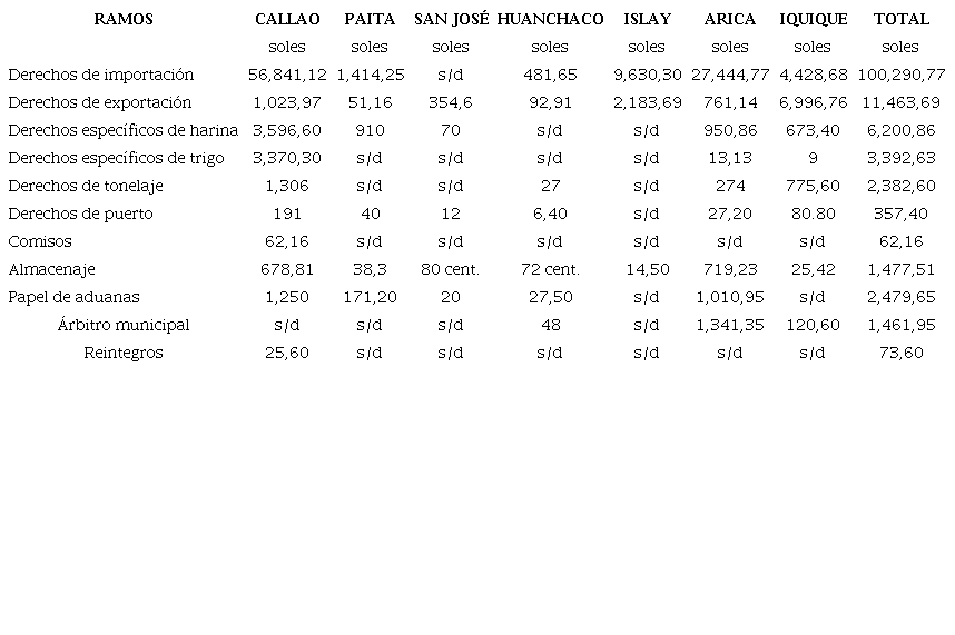 Por citar una muestra aleatoria sobre la recaudación aduanera en mayo de 1866, podemos ver lo siguiente (Tabla 1).