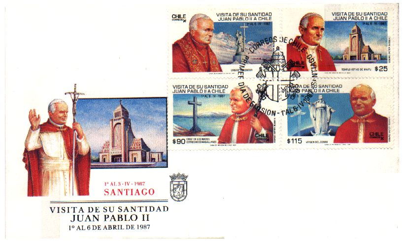 Chile has traditionally been considered a predominantly Catholic country. Despite the formal separation between Church and State in 1925, a significant proportion of the country's population still identified as Catholic. This was reflected in the postage stamps that the Chilean State designed, minted, and issued during the latter half of the 20th century. The aforementioned events took place irrespective of the political affiliation of the governing body. They depict elements of customary culture through the presentation of various icons like the Pomaire clay sacred family and yearly broadcasts emphasizing the significance of Christmas, even in occurrences with noteworthy political implications like the visit of John Paul II in 1987.