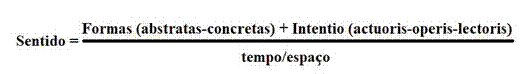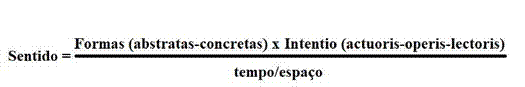 Onde está o sentido? ou, qual é o sentido? Sabemos que ele é construído através das formas (abstratas e concretas) e da interpretação das intentio, sob o denominador tempo/ espaço. Daí que, num primeiro momento, possamos dizer que esquematicamente temos dois modelos que apontam para o sentido. Esses dois modelos vão depender segundo consideremos soma ou multiplicação das formas e das intentio.