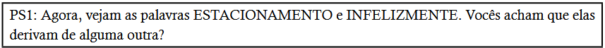PS1: Agora, vejam as palavras ESTACIONAMENTO e INFELIZMENTE. Vocês acham que elas derivam de alguma outra?